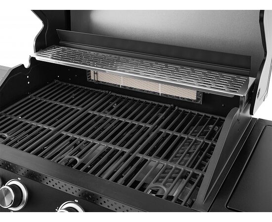 Οι 4 κύριοι καυστήρες INOX επιτρέπουν να δουλέψεις ζώνες ψησίματος (άμεσο/έμμεσο). Επιπλέον διαθέτει ειδικό καυστήρα sear 4kW για γρήγορο “σφράγισμα” σε υψηλή θερμοκρασία, ενώ ο κεραμικός infrared backburner 3,5kW προσφέρει ισχυρή θέρμανση από πίσω για τεχνικές τύπου rotisserie ή πιο έντονο τελείωμα στο ψήσιμο.