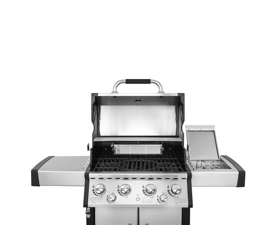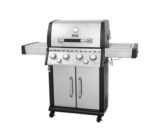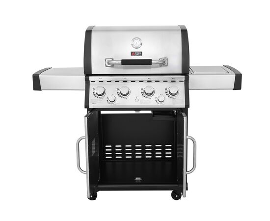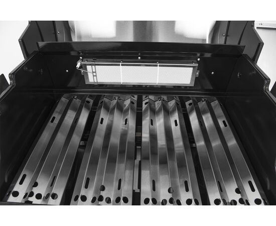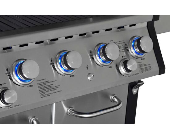 4 καυστήρες INOX 3,5kW ο καθένας 1 καυστήρας οπίσθιος κεραμικός infrared BACKBURNER 3,5kW 1 πλαϊνή εστία INOX 3,5kW Σχάρες μαντεμένιες εμαγιέ ματ MULTIFUNCTIONAL Σχάρα συντήρησης INOX 68,5x18εκ. Θάλαμος ψησίματος επισμαλτωμένος (εμαγιέ) Καπάκι διπλού τοιχώματος με INOX εσωτερικό και πλαϊνά από χυτό αλουμινίου Χειρολαβή καπακιού INOX με προστασία από την θερμοκρασία Αποσπώμενο συρτάρι συλλογής λίπους INOX Πιεζοηλεκτρονική ανάφλεξη Διαχύτες INOX νέα γενιάς Θερμόμετρο INOX Εσωτερικό πορτών INOX Διακόπτες ABS με φωτισμό LED Συμπαγείς ρόδες μεταφοράς με φρένο Χώρος αποθήκευσης Πλαϊνά ράφια με γάντζους Ανοιχτήρι μπύρας Συμπεριλαμβάνονται σετ βάσεις σούβλας Συμπεριλαμβάνεται HEAVY-DUTY κάλυμμα Επιφάνεια ψησίματος: 66x46εκ. Διαστάσεις Συσκευασίας: (ΜxΥxΒ) 81x66,5x64,5εκ.